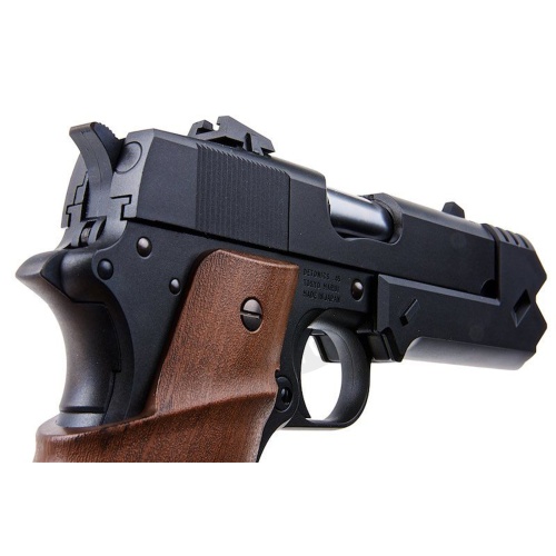 The Tokyo Marui Chisato Handgun GBB Pistol is a unique, limited-edition airsoft replica inspired by the anime "Lycoris Recoil." Modeled after Chisato Nishikigi's preferred weapon, this gas-powered pistol combines Tokyo Marui’s reliable DT .45 system with realistic details, like a strike face compensator and a thumb-rest grip panel. Designed for performance, it includes a widened rear sight for an enhanced field of view and a 22-round magazine. At 280 FPS, it’s a powerful choice for airsoft fans and collectors alike. Packaged to resemble Chisato’s iconic gun case, it’s the perfect blend of style, functionality, and anime homage.