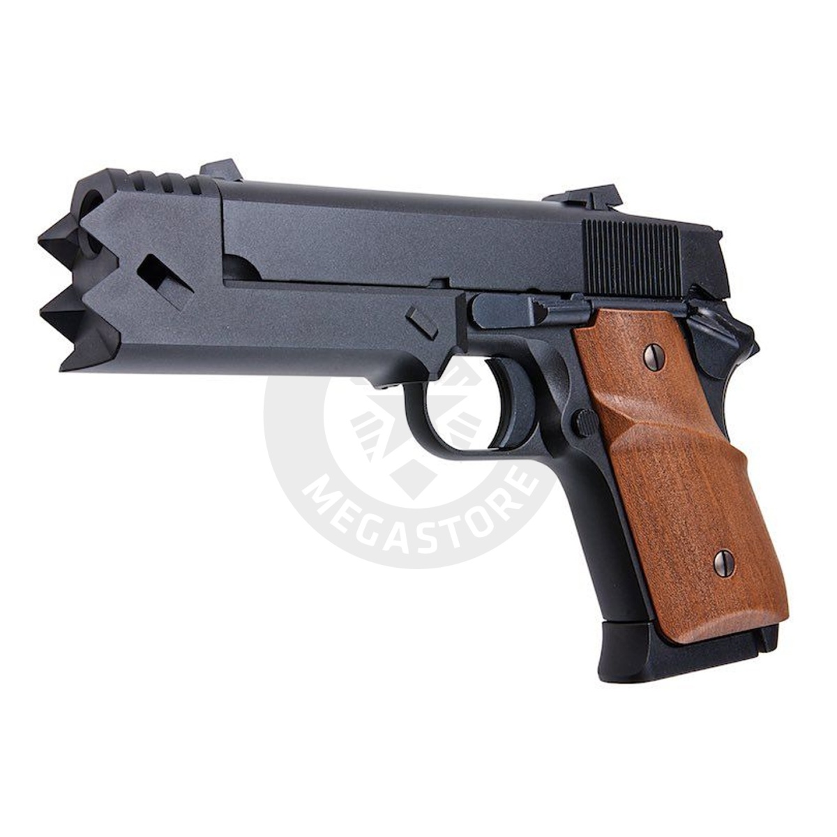 The Tokyo Marui Chisato Handgun GBB Pistol is a unique, limited-edition airsoft replica inspired by the anime "Lycoris Recoil." Modeled after Chisato Nishikigi's preferred weapon, this gas-powered pistol combines Tokyo Marui’s reliable DT .45 system with realistic details, like a strike face compensator and a thumb-rest grip panel. Designed for performance, it includes a widened rear sight for an enhanced field of view and a 22-round magazine. At 280 FPS, it’s a powerful choice for airsoft fans and collectors alike. Packaged to resemble Chisato’s iconic gun case, it’s the perfect blend of style, functionality, and anime homage.