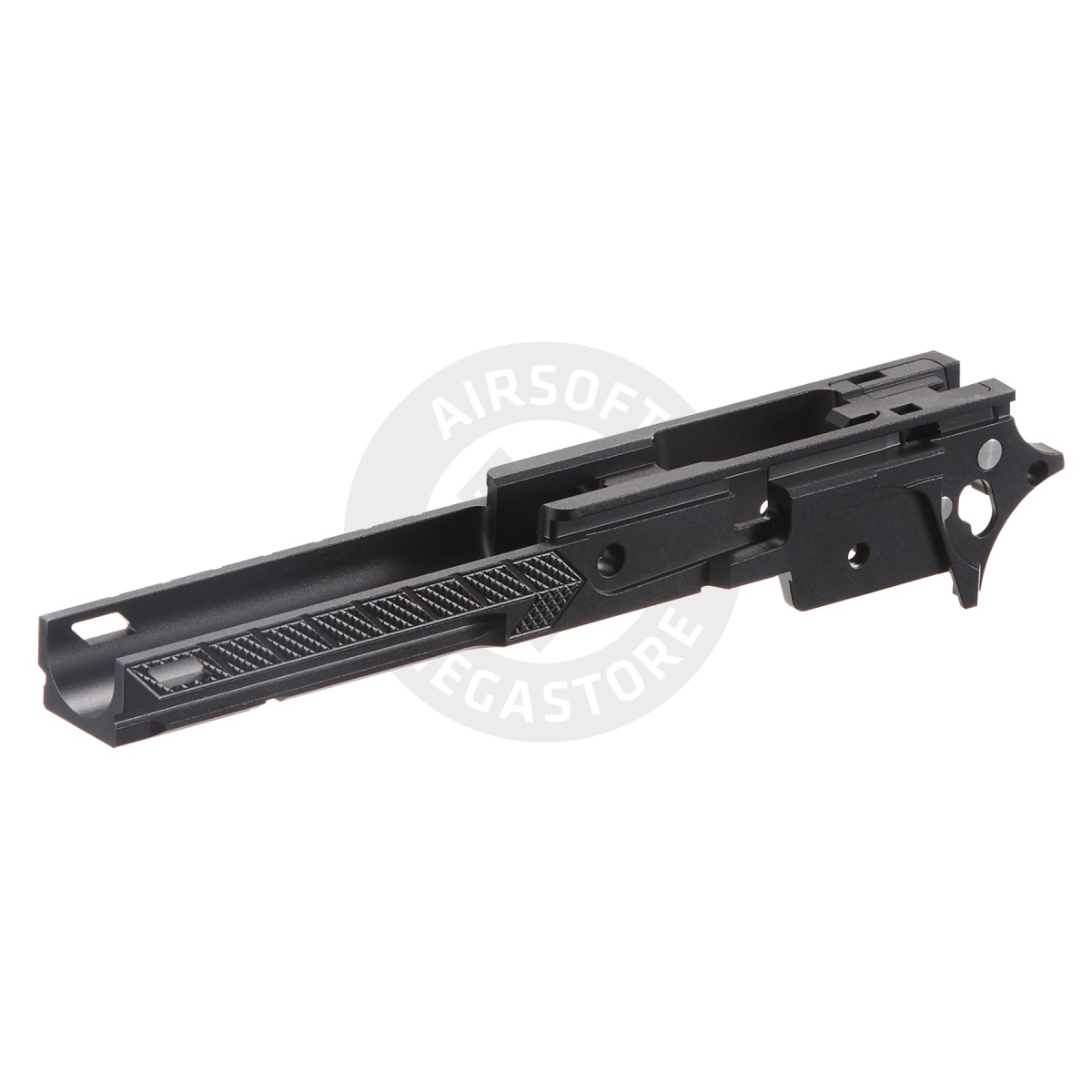The Dr. Black CNC Aluminum Frame Style 07 for TM Hi-CAPA 4.3 GBB Pistols delivers a sleek upgrade for airsoft enthusiasts. Made from high-grade CNC-machined 6063 aluminum alloy, this frame ensures precision and durability, offering a perfect fit for Tokyo Marui Hi-Capa series pistols. Its stylish design enhances the look of your Hi-CAPA, while the integrated tactical rail is compatible with most flashlights on the market, making it both functional and visually striking. Built for high-performance airsoft players, this frame is a must-have for those seeking to improve the aesthetics and functionality of their Hi-CAPA 4.3.