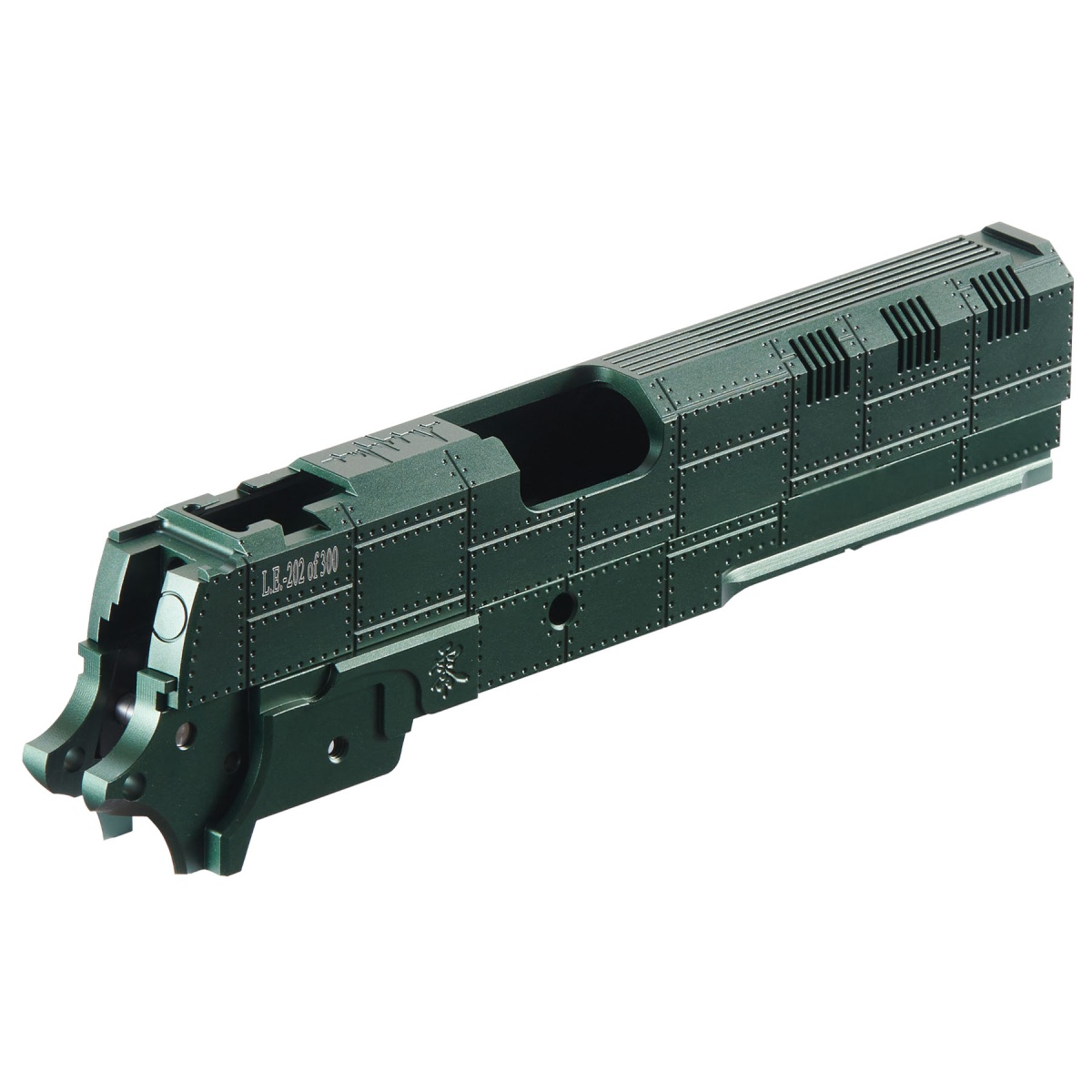 The Dr. Black "Type-ZERO" 5.1 Slide Set is a rare, limited-edition upgrade crafted for Tokyo Marui Hi-CAPA 5.1 gas blowback pistols. With only 300 sets produced worldwide, this exclusive slide and mid-frame set delivers precision-engineered performance and unmatched style for serious airsoft builders. Machined from CNC aluminum, the Type-ZERO slide offers a clean, streamlined profile while maintaining rigidity and durability under high-speed use. The anodized finish gives your pistol a sleek, custom look, perfect for competition setups or showcase builds. Designed for players who want both elite performance and collector-grade rarity, this slide set stands apart in any Hi-CAPA loadout.