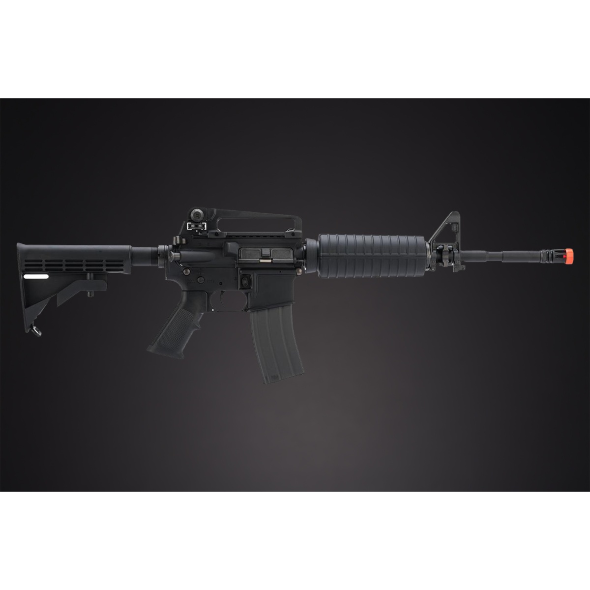 The Tokyo Marui M4A1 Carbine MWS ZET System Gas Blowback Rifle (Black) is a premium airsoft replica designed for players who demand realism, performance, and durability. Featuring a high-quality CNC-finished cast aluminum receiver, this rifle delivers exceptional strength and an authentic feel, closely mirroring the real steel M4A1. The polymer carbine handguard with aluminum heat shielding enhances durability while keeping the rifle lightweight and maneuverable. Tokyo Marui's ZET System sets this rifle apart, improving gas efficiency, durability, and recoil action, making it one of the most reliable gas blowback rifles on the market. The licensed Colt trademarks add an extra layer of authenticity, making this rifle an excellent choice for MilSim players, collectors, and serious airsoft enthusiasts. A removable carrying handle with an integrated rear sight provides versatility for different sighting options, while the adjustable hop-up system ensures precision and accuracy in long-range engagements.