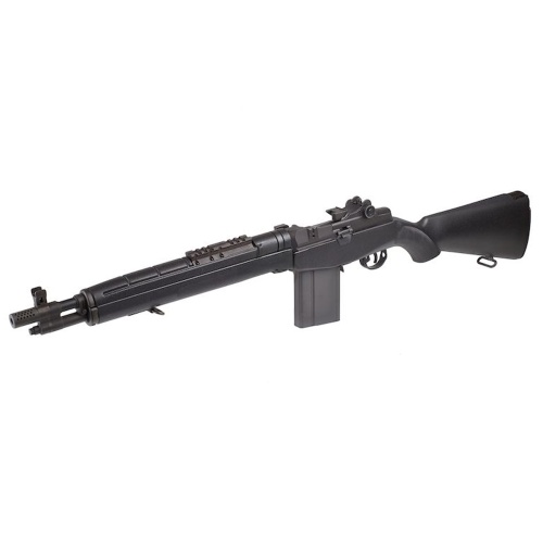 The Tokyo Marui M14 SOCOM AEG Airsoft Gun is a compact and high-performance take on the classic M14 platform, designed for serious players seeking realism, durability, and power. Built with Tokyo Marui's renowned internal quality, the M14 SOCOM features a Version 7 gearbox paired with a reliable EG700 motor for smooth semi and full-auto operation. Its short-barrel configuration with a micro ported muzzle brake makes it ideal for close- to mid-range engagements, and the 14mm CCW threaded outer barrel allows you to customize it with a suppressor or tracer unit. With an adjustable hop-up and 420mm precision inner barrel, this rifle delivers tight groupings with standard 6mm BBs, offering impressive accuracy and consistency right out of the box. Externally, the M14 SOCOM sports a sleek black finish and a durable sandstone-style stock and handguard for a tactical look and enhanced grip. The rear-wired battery system (Type 01 Large battery, not included) and Tamiya connector keep things secure and easy to manage in the field. It's loaded with thoughtful design features like a scout-style optics rail for easy mounting and SOCOM-marked operation rod for authentic detailing. Weighing 3650g and measuring 946mm in length, this AEG balances a full-size rifle feel with maneuverability. The included 70-round midcap magazine offers realistic capacity and reliable feeding, compatible with all Marui M14 mags. Whether you're a MILSIM player, collector, or weekend warrior, the Tokyo Marui M14 SOCOM delivers premium performance with Tokyo Marui's legendary craftsmanship-making it a standout option for any airsoft loadout. A top-tier electric airsoft rifle for those who value heritage, precision, and reliability in every shot.