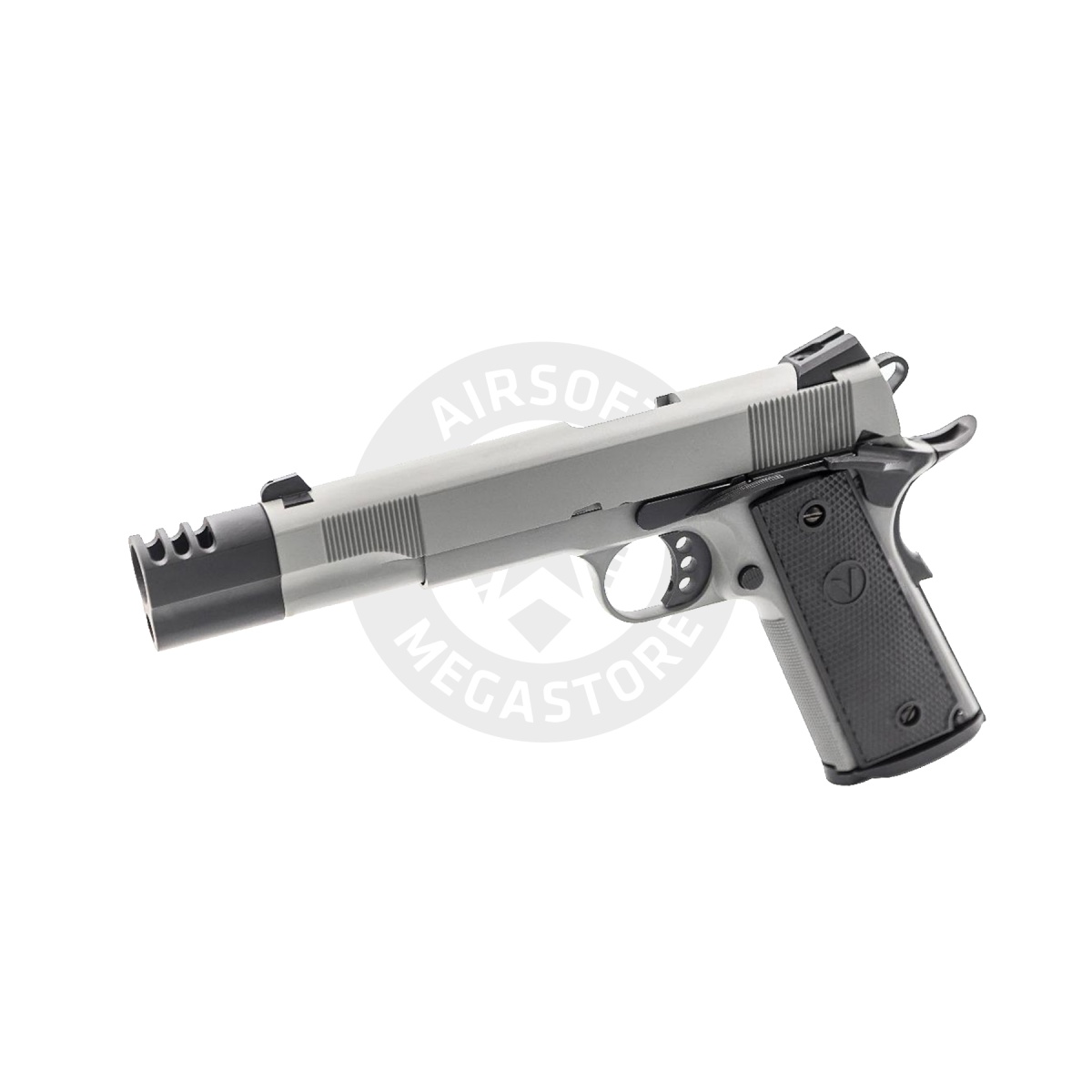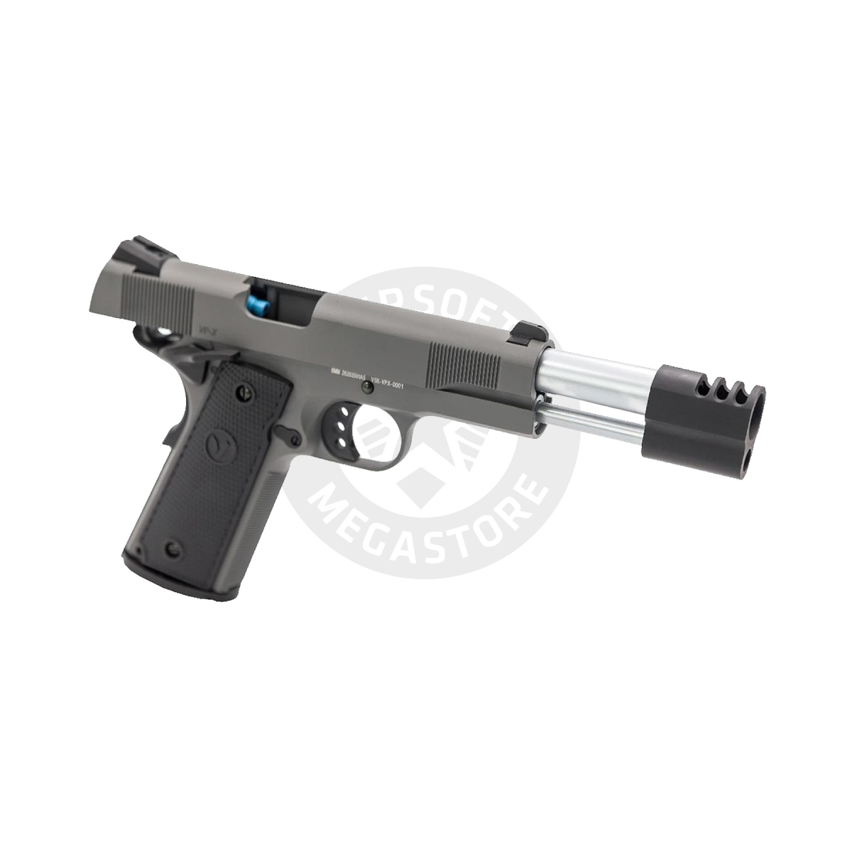 The Vorsk VP-X Gas Blowback Pistol in grey brings a bold and tactical design to the airsoft field, combining precision engineering with modern aesthetics. Designed for performance and reliability, the VP-X features a sturdy aluminum slide paired with a polymer grip, giving users the perfect balance of durability and lightweight handling. Powered by green gas, this airsoft pistol delivers consistent muzzle velocity around 300 feet per second with 0.20g BBs, making it ideal for both indoor and outdoor scenarios. The adjustable hop-up system allows players to fine-tune their shots for improved range and accuracy, while the 21 round magazine ensures you're always ready for the next engagement. From its functional beaver tail grip safety to its aggressive Vorsk compensator and high-stipple polymer grip, the VP-X is built for serious airsoft operators. The bespoke MEU-style slide with vertical slide serrations allows for fast and confident racking, while the chrome inner barrel gives it a sleek performance look. Additional features include a slide lock latch and compatibility with VGM-03-02 and VGM-03-06 magazines, offering expanded loadout flexibility. Whether you're looking to elevate your airsoft sidearm collection or upgrade your current setup, the Vorsk VP-X in grey offers eye-catching looks, dependable gas blowback action, and field-ready features designed to stand out in any skirmish.