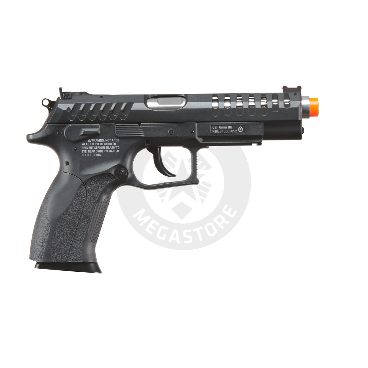 The Win Gun Airsoft CO2 Non Blowback Pistol with Metal Slide, available at Airsoft Megastore, is a durable and reliable sidearm designed for serious airsoft players. Featuring a CNC-cut metal slide and a polymer lower, this pistol combines strength with lightweight handling. The fixed fiber optic iron sights and fluted chrome barrel enhance accuracy, while the ergonomic molded grip ensures comfort during extended use. Equipped with a slide release and a Picatinny lower rail, this CO2-powered pistol is ready for tactical accessories. With a 14-round magazine capacity and sleek black finish, it’s an excellent choice for any airsoft enthusiast.