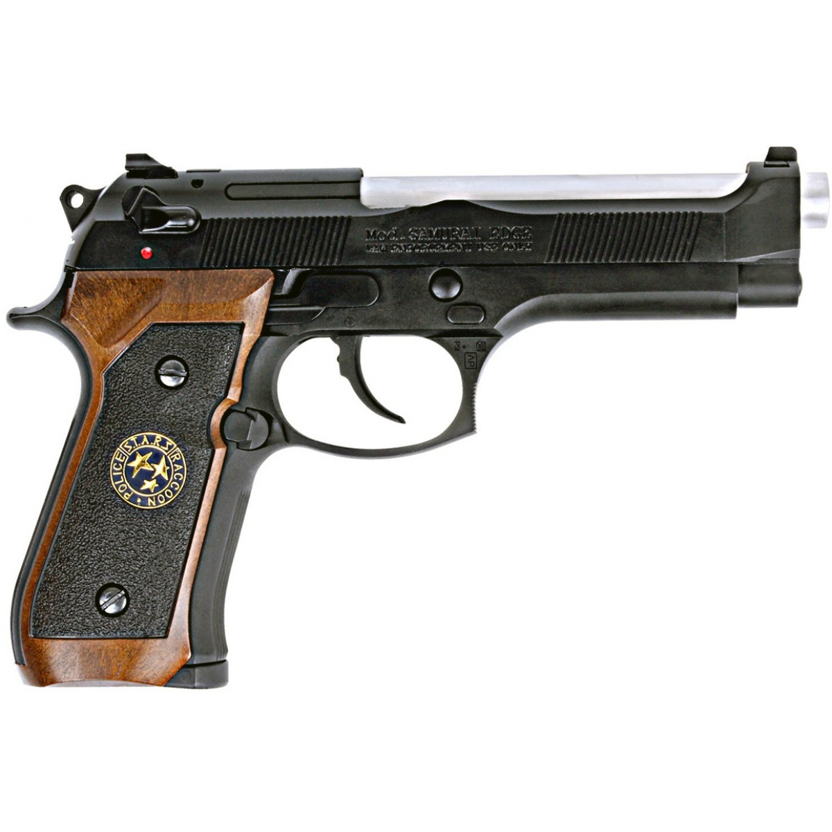 Unleash the WE-Tech RPD Biohazard Samurai Edge M92 GBB Airsoft Pistol, a zombie eradicator's dream. With a durable metal slide, frame, and polymer grips etched with S.T.A.R.S. markings, this pistol is both iconic and reliable. The 26-round magazine, blowback action, and REAPS hop-up bucking ensure optimal performance. Designed for accuracy with front and rear sights, it's perfect for close-range shots. GoldenBall ProSlick BBs maximize precision. Ideal for enthusiasts seeking realism, the semi-automatic firing and functional safety enhance the immersive experience. Join the elite with this legendary WE pistol – dominate the undead with style and efficiency. Get yours now!