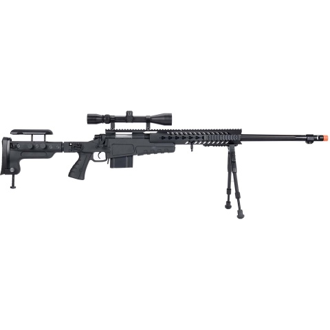 WellFire MB4417 M40A3 Bolt Action Airsoft Sniper Rifle w/ Scope & Bipod - BLACK