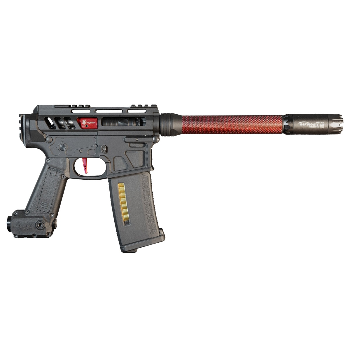 The Wolverine Airsoft Heretic Labs Article IV is a competition-ready HPA rifle engineered to push performance to the absolute limit. Built on the proven MTW platform, this model combines Heretic Labs' most advanced technology with the rugged durability and modularity players expect from Wolverine. The skeletonized CNC billet aluminum receiver set keeps weight to a minimum while retaining strength, while the genuine 8 inch carbon fiber outer barrel paired with a 208mm inner barrel delivers unmatched balance and precision. At the heart of the Article IV is the INFERNO XTS HPA engine, fine-tuned to provide lightning-fast response, superior consistency, and long-term reliability across all firing modes. Backed by the BLINC Bluetooth FCU, users can fully customize their rifle's performance through the Wolverine BLINC App, giving them total control over trigger sensitivity, rate of fire, and dwell settings. Every detail has been designed for high-level competitive play, from the CNC speed trigger with 3-point adjustment to the integrated Storm Category 5 regulator built into the tank grip. The Article IV doesn't just perform-it turns heads with cutting-edge features like the Acetech Bifrost BT tracer unit, which provides vivid multi-color effects, a live chrono display, and automatic dwell tuning. Paired with the PTS EPM-MTW midcap magazine featuring empty mag detection, this rifle creates a truly immersive shooting experience. With a rate of fire adjustable from 5-35 RPS, an operating pressure range of 60-160 PSI, and full MTW-spec compatibility, the Article IV offers limitless customization for players who demand flexibility and top-tier function. Lightweight at only 2.6 pounds (without tank) and equipped with a Picatinny stock adapter and QD sling point, it's designed for agility and endurance on the field. For competitive players and MILSIM enthusiasts alike, the Heretic Labs Article IV is more than just an upgrade-it's the future of HPA speedsoft performance.